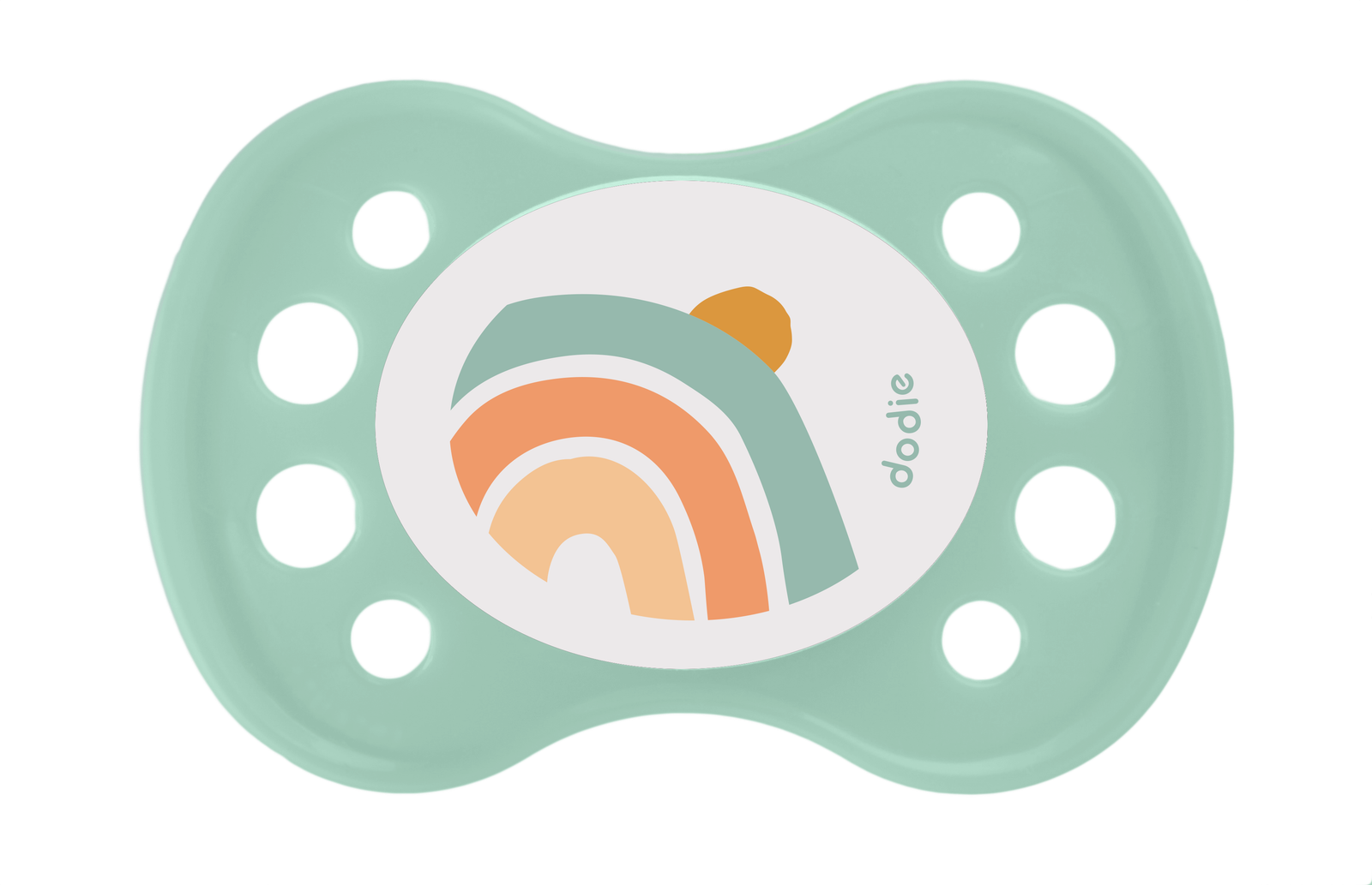 Dodie Sucette Anatomique 0-6 Mois N°A95 – Modèle : Arc en Ciel est une sucette à la forme anatomique, réversible, pour un bon positionnement garanti.