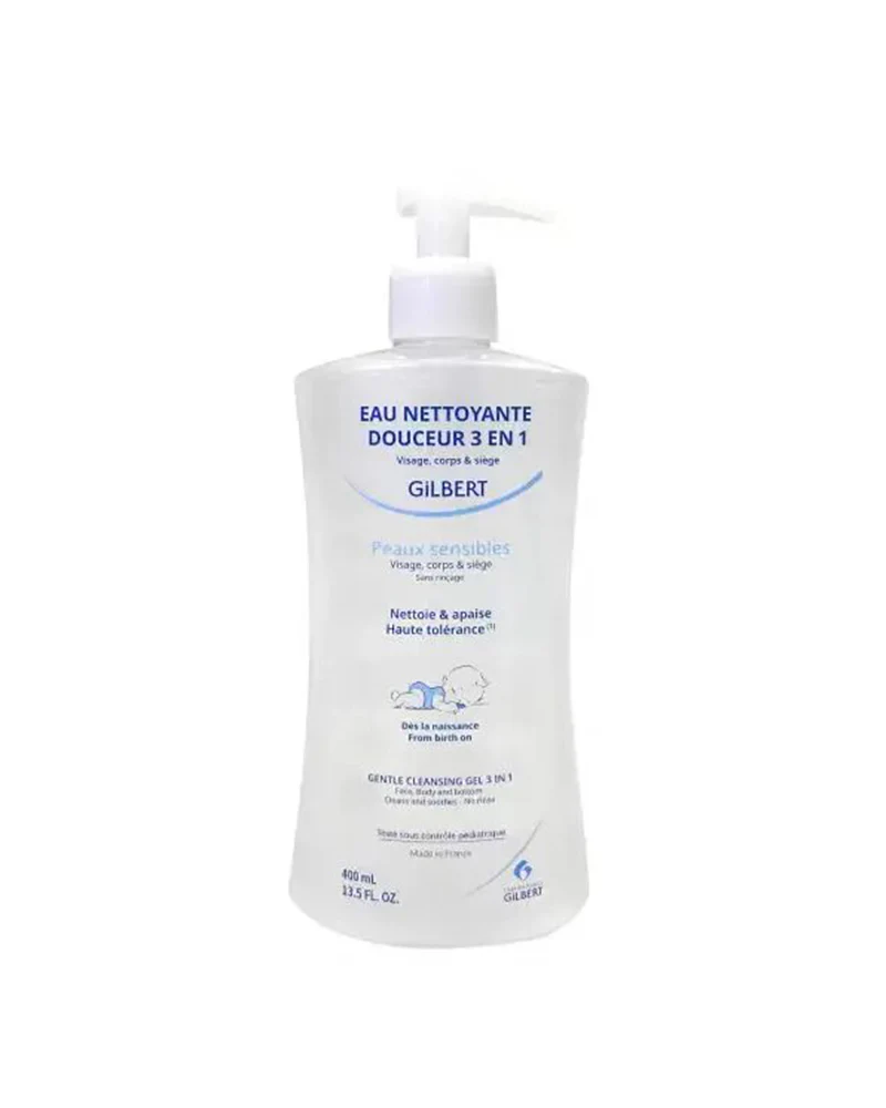 L’Eau Nettoyante Douceur 3-en-1 est composée d’actifs et ingrédients qui respectent l’équilibre de la peau de bébé :