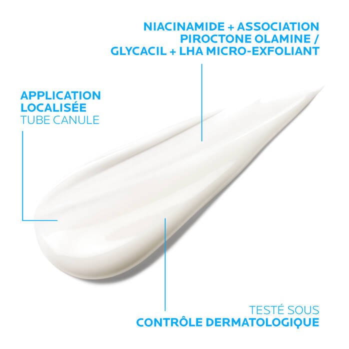 Le LHA micro-exfoliant et l’Eau Thermale de La Roche-Posay, réparatrice, activent le processus de régénération de la peau.