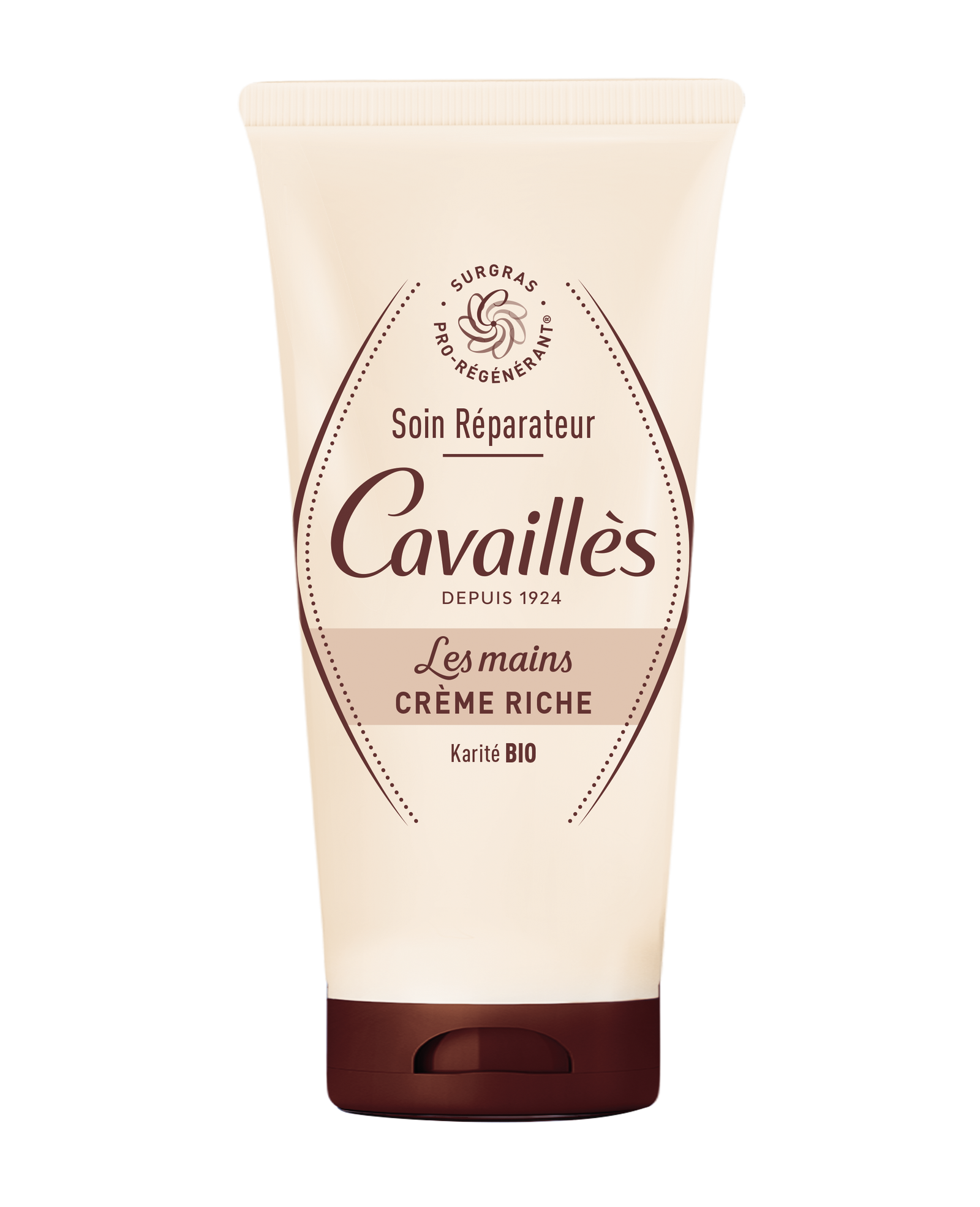 Rogé Cavaillès Nutrissance Crème Mains Veloutante 50 ml enrichie en surgras vitaminé, beurre de karité et huile d’amande douce hydrate et répare les mains sèches et abîmées. Les mains sont souples et douces. 97% des ingrédients sont d’origine naturelle.
