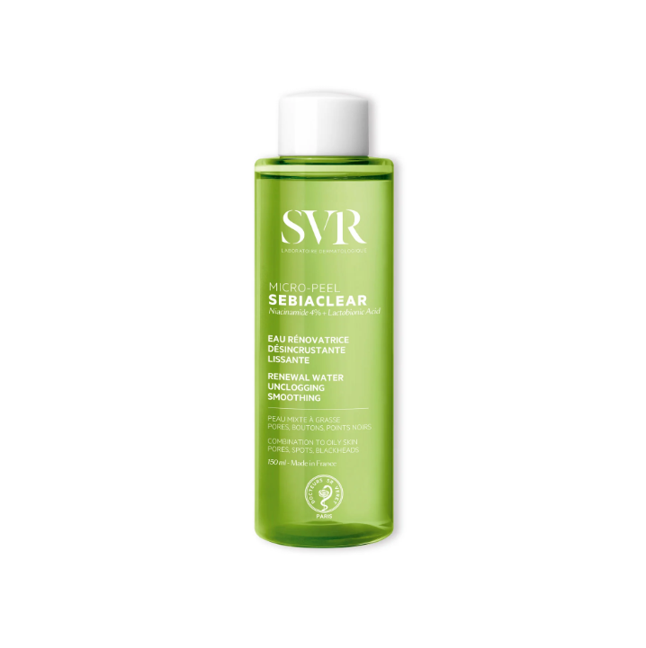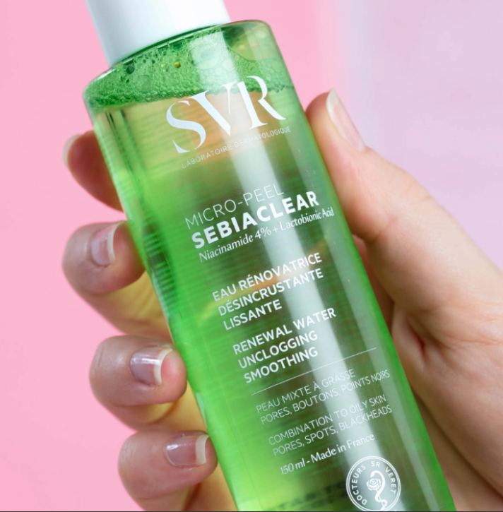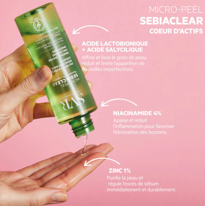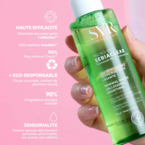 Plus de 40% des adultes se battent contre leurs boutons et imperfections, un vrai combat du quotidien. SEBIACLEAR Micro-Peel, la première eau dermatologique haute concentration désincrustante lissante offre une nouvelle gestuelle de soin efficace et sensorielle. Aussi liquide que de l’eau, mais si riche en actifs, cette essence évanescente infuse la peau très rapidement pour un effet peau nette immédiat. Elle puise sa force et son efficacité dans le choix de ses actifs, un duo d’acides kératolytiques complémentaires pour agir rapidement et durablement sur les pores, les boutons et les points noirs sans renoncer à la tolérance. Sa texture aqueuse délicatement parfumée, non grasse, non collante garantie un vrai coup de fraicheur pour une peau propre, purifiée sans être desséchée, des pores resserrés et un grain de peau lissé.