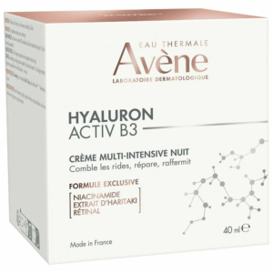 Avec l’âge tout s’accélère. Les cellules vieillissantes se propagent et la peau fonctionne au ralenti. Les laboratoires dermatologiques Avène créent la crème nuit Hyaluron Activ B3 contenant du rétinal, de l’acide hyaluronique pur, de l’extrait d’Haritaki et du niacinamide pour agir sur la cause du vieillissement et prolonger la vie des cellules*. Dès le réveil, la peau est défroissée. Dès 15 jours, elle est réparée, plus ferme et les rides sont comblées**. Véritable soin cocooning pour la nuit, sa texture délicatement parfumée apporte du confort à la peau, sans fini gras. Sa teinte légérement orangée est liée à la présence de rétinal.