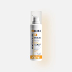 D-Biotic Velvet Sunscreen est une innovation avancée dans la protection solaire, offrant une défense exceptionnelle contre les rayons UV grâce à son indice de protection solaire (SPF) élevé de 50+. Ce produit révolutionnaire se distingue par son toucher sec unique, ne contenant aucune trace d’eau.