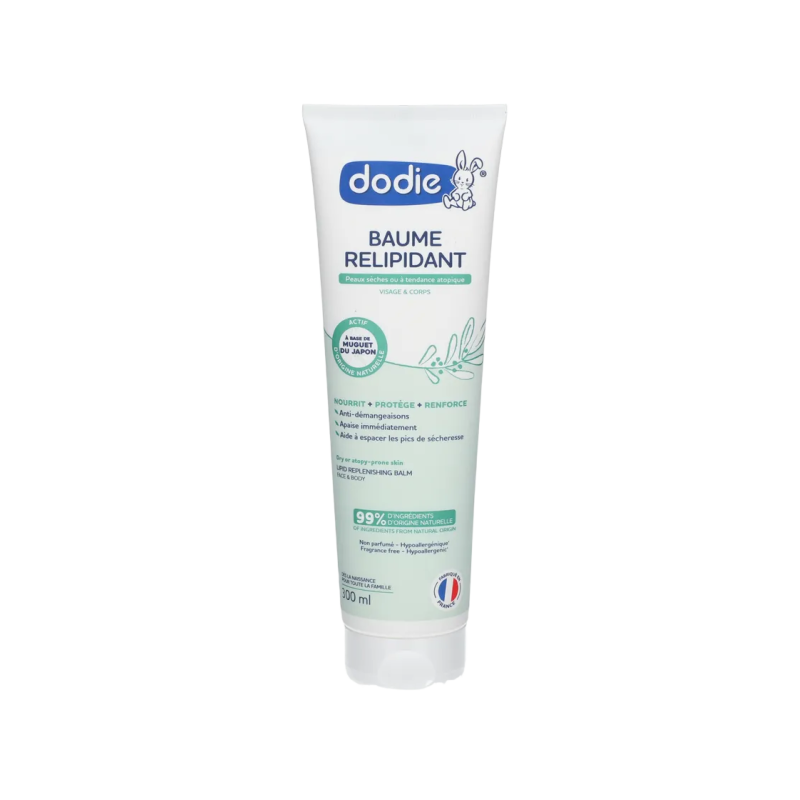 Le baume relipidant Dodie a été conçu pour les peaux sèches et atopiques. Spécialement formulé pour la peau fragile et sensible de bébé, il s’utilise dès la naissance sur le visage et le corps. Appliqué quotidiennement, il permet d’hydrater et d’apaiser durablement la peau des plus petits.