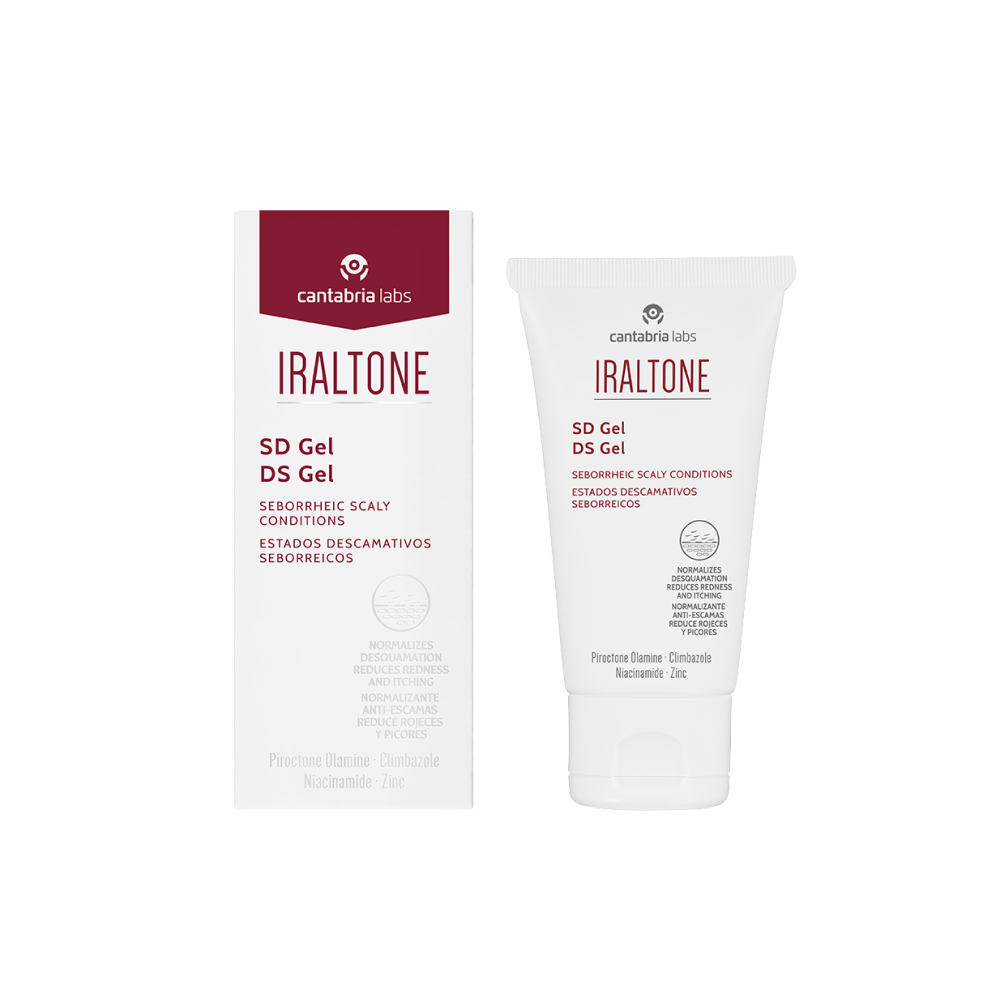IRALTONE DS Gel à effet séborégulateur, atténue la desquamation, les rougeurs et les démangeaisons.