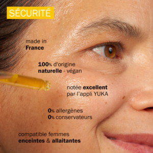 0% : conservateurs, parabènes, phénoxyéthanol, silicones, huiles minérales, PEG, ingrédients d’origine animale.